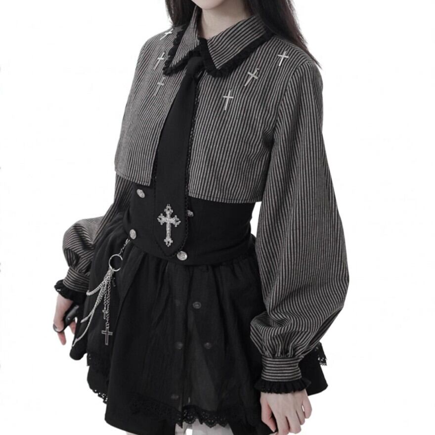 取り外し可能なチェーンとクロスチャームが、退廃的なゴシック感を演出します。