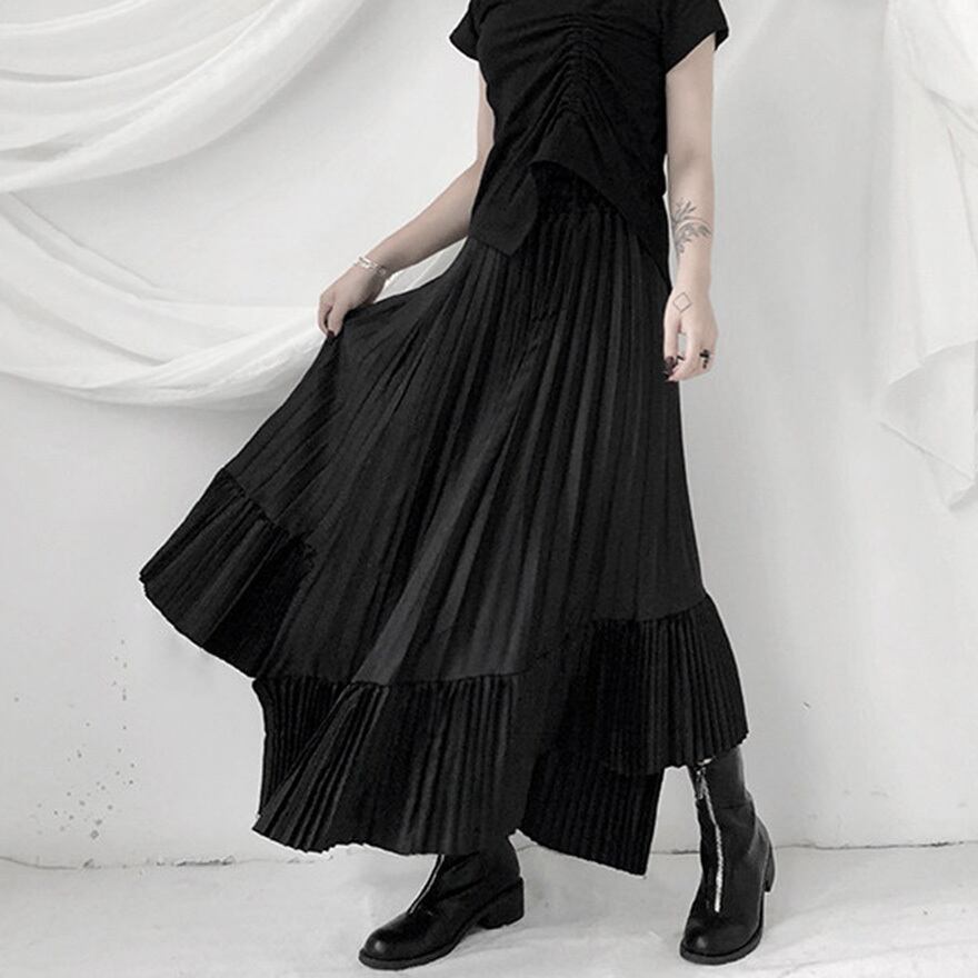 ライブ衣装や推し活に 地雷系・モード 裾フリル付ロングプリーツスカート ウエストゴムで快適な履き心地|天使と悪魔
