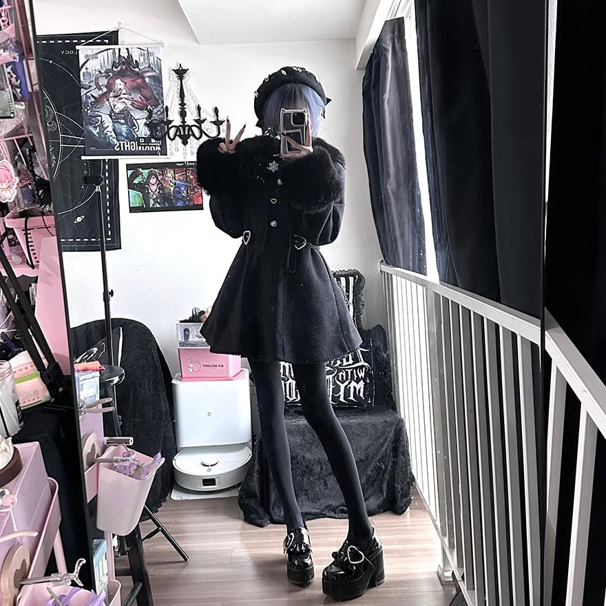 地雷系や甘めゴシックのファッションを好む方、冬でもシルエットの美しさを重視したい方、装飾性の高いアウターを主役にしたい方。