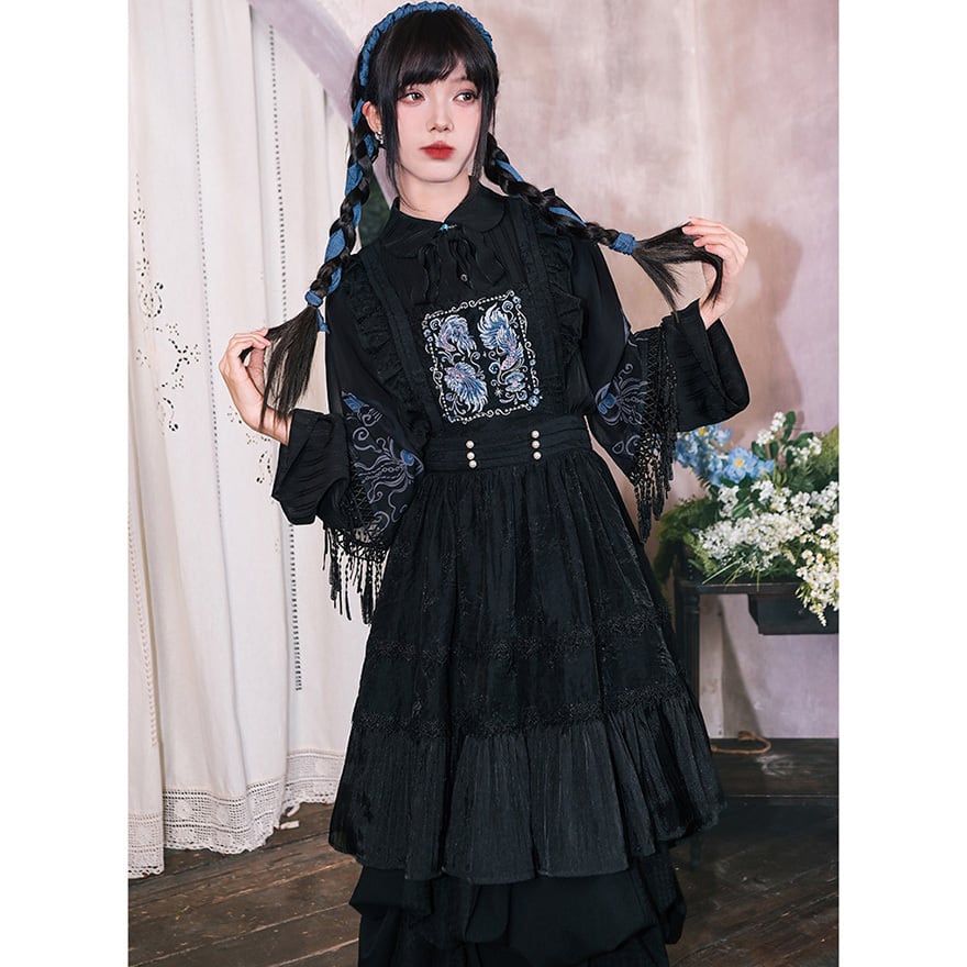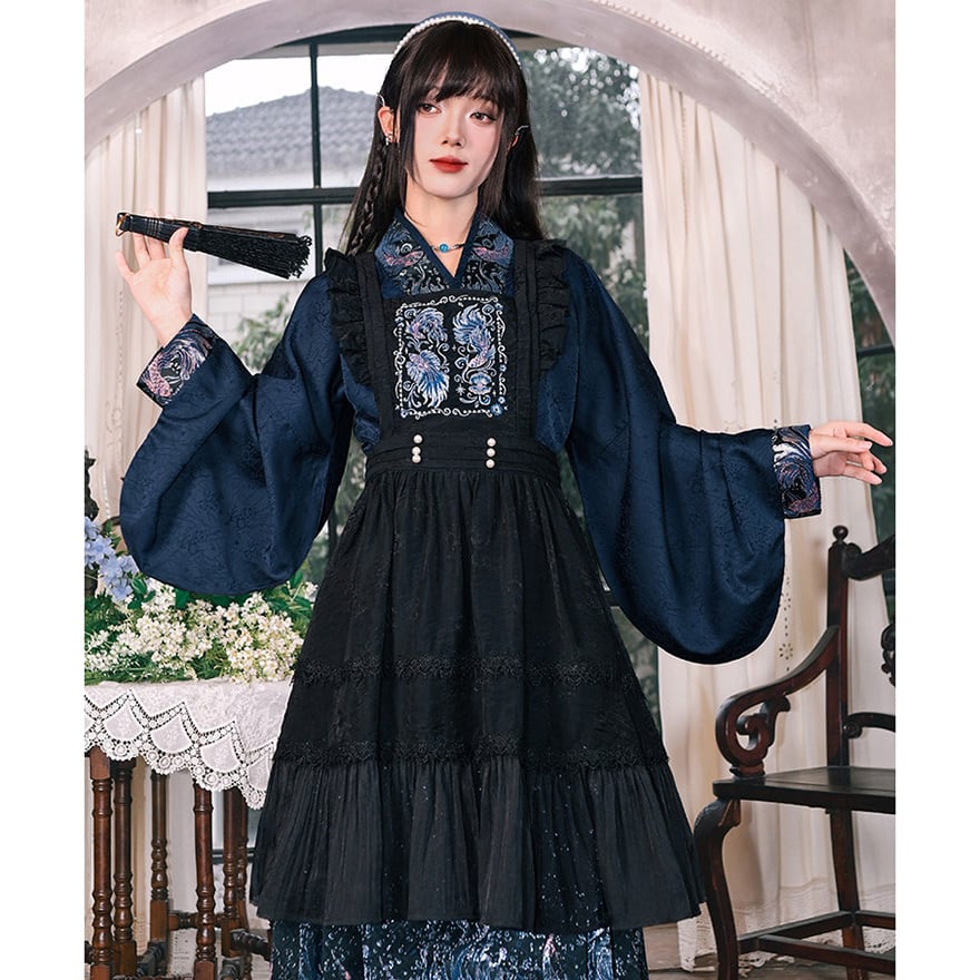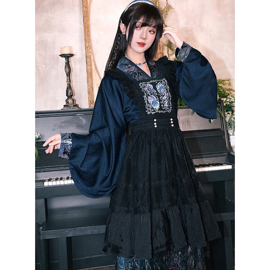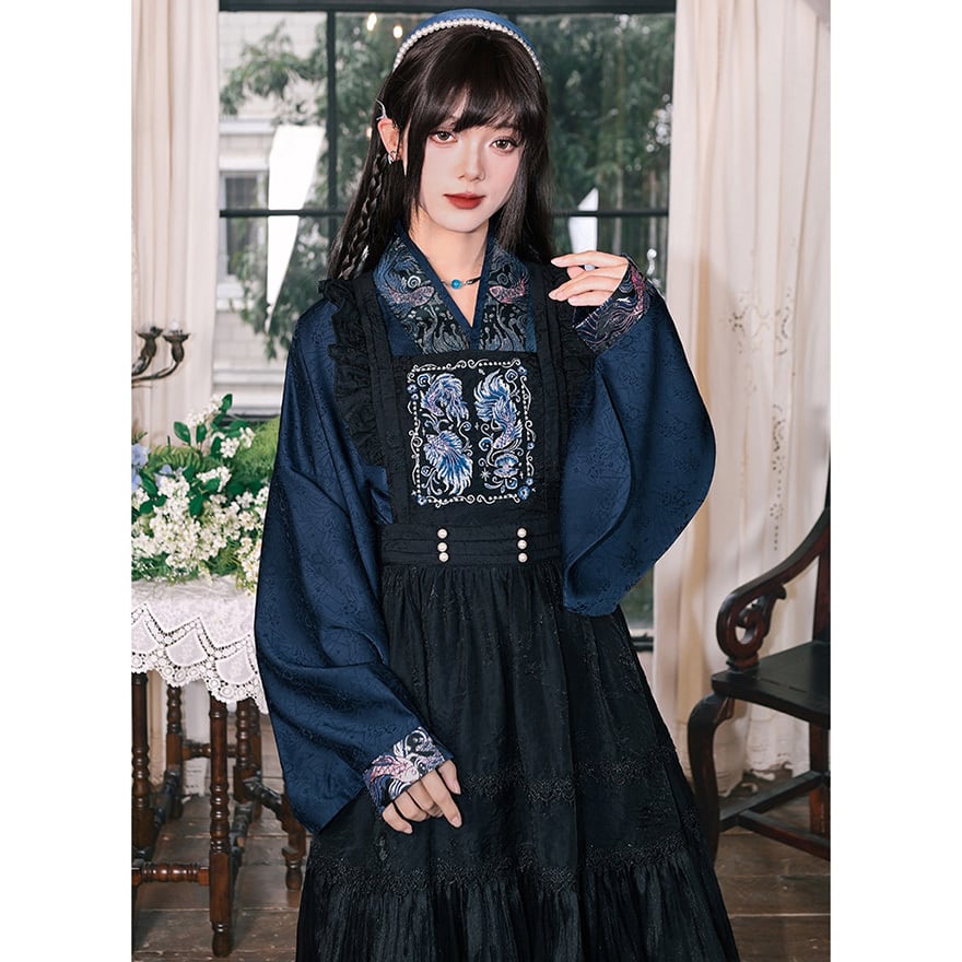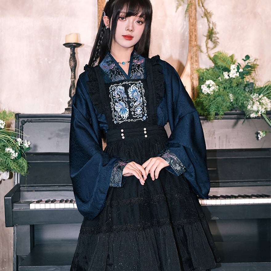 天使と悪魔の中華ゴシックエプロンは、胸元の豪華な刺繍が特徴な中華ゴシックエプロンです。