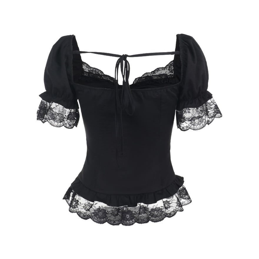 トップスだけでコーデの完成度を上げたいのに、普通の黒トップスだと物足りなく感じることがあります。そんな時にこの一着なら、レースとパフ袖の存在感で上半身にしっかりポイントが生まれ、アクセを盛りすぎなくても雰囲気のある着こなしにまとまります。
