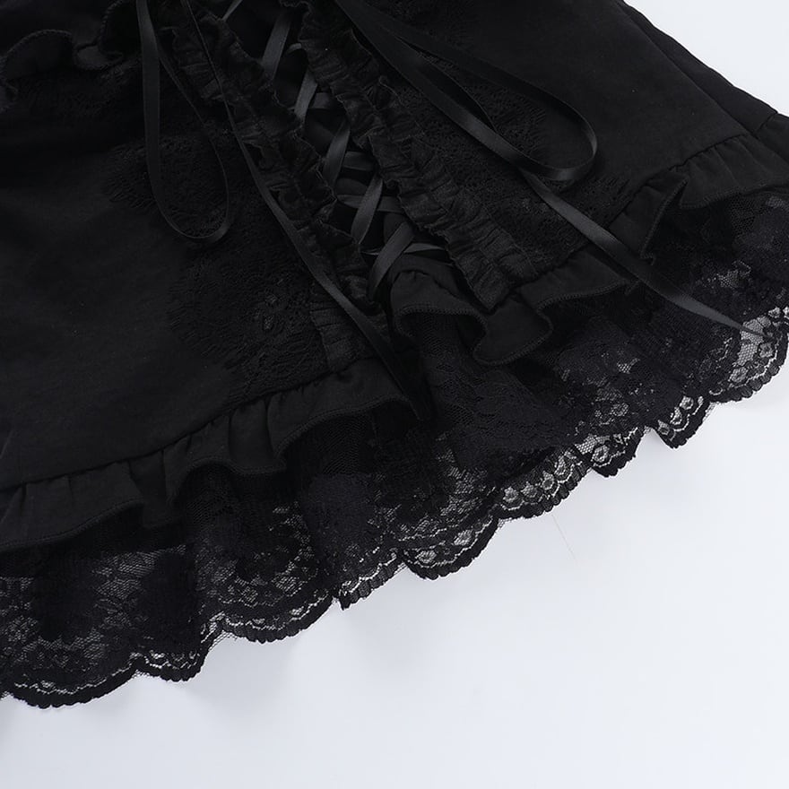 ・裾まわり:フリルとレースの切り替えで、短丈でも単調にならない仕上がり