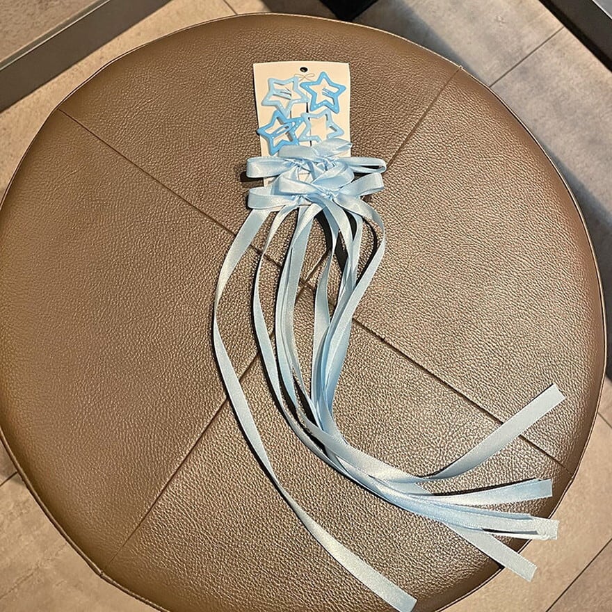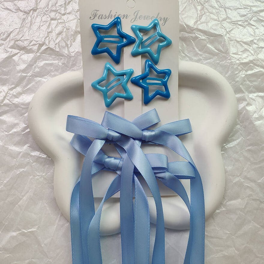 サブカル系ファッション 星型ヘアクリップ リボン編み上げ ヘアアクセサリー 2タイプ ブルー シルバー コンカフェ ライブ参戦|天使と悪魔
