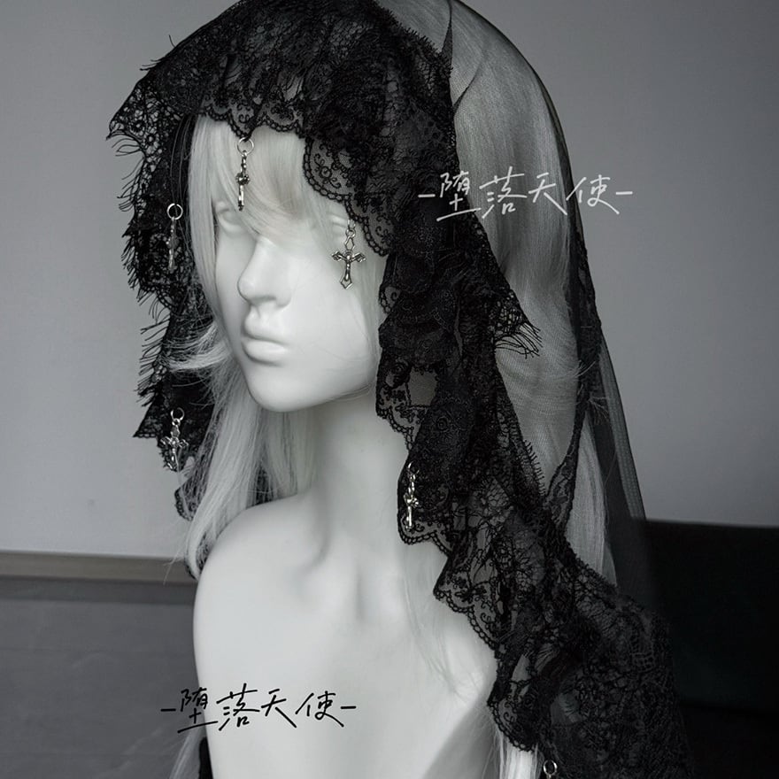 顔周りを覆うベールと、視線を惹きつける十字架のチャームが、理想の闇深コーデを完成させてくれます。
