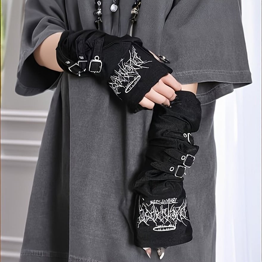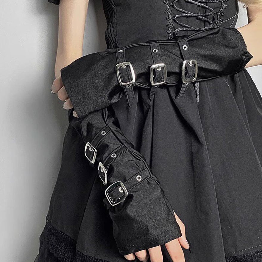 サブカル系アクセサリー アームカバー 3連バックルが病み可愛い パンクなライブ衣装|天使と悪魔