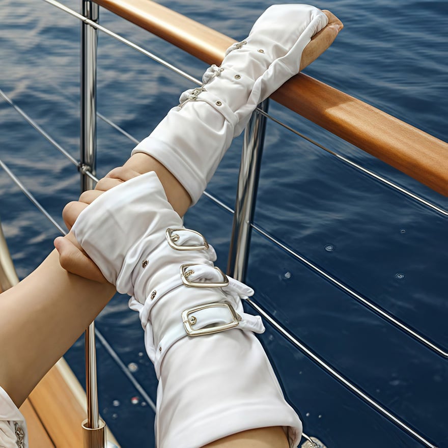・シルエット:手首から前腕を覆うスリムなフィット感