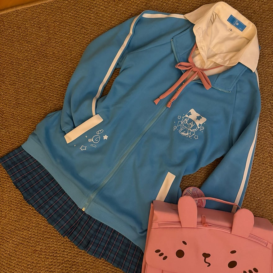 「普通のジャージだとスポーティーすぎて可愛さが足りない」というお悩みも、このデコラティブなイラストとサイドラインのデザインが解決してくれます。