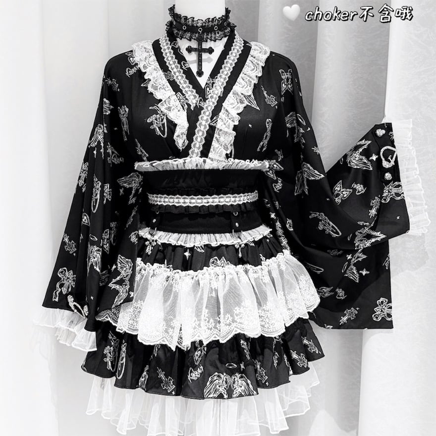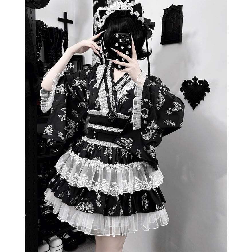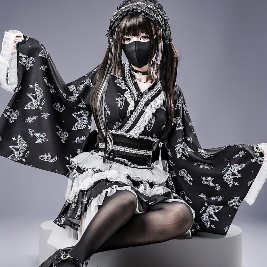 日本の伝統的な和の美しさと、地雷系のダークな個性が融合した特別な一着です。