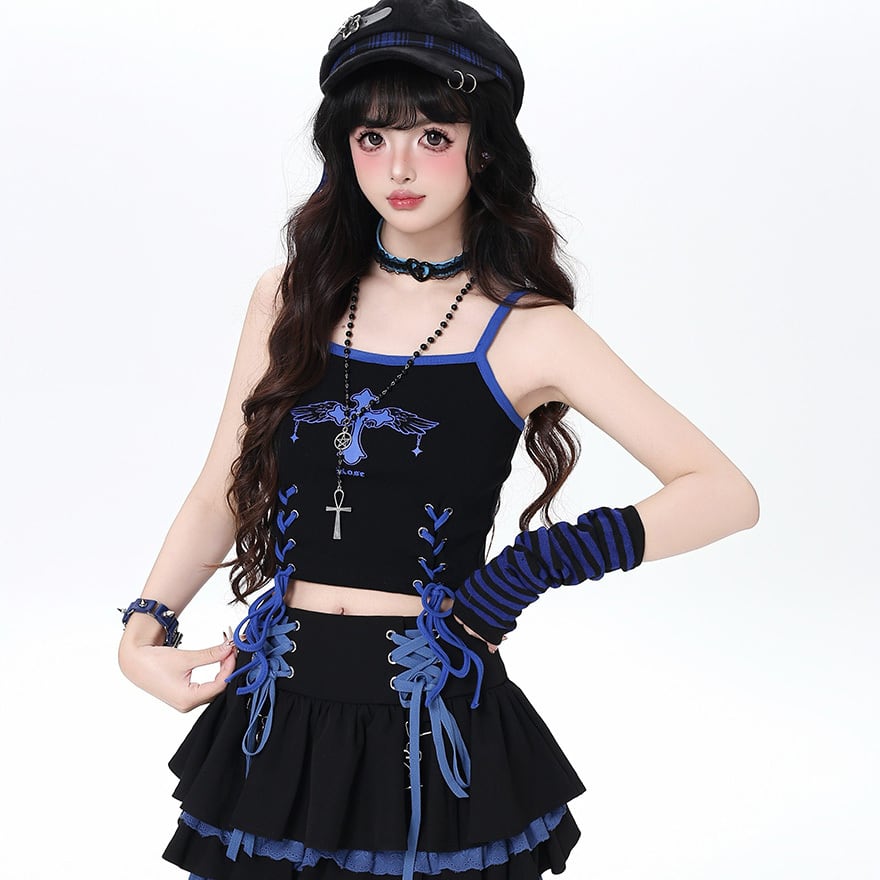 サブカル系ストリートレースアップキャミソール(ビスチェ)