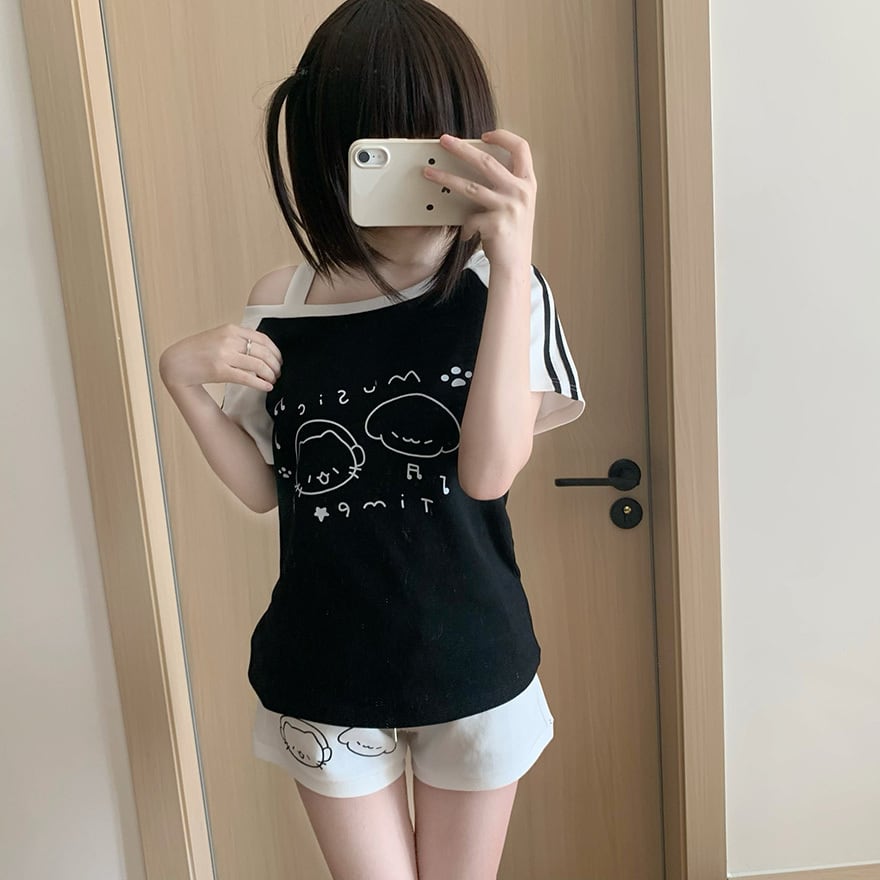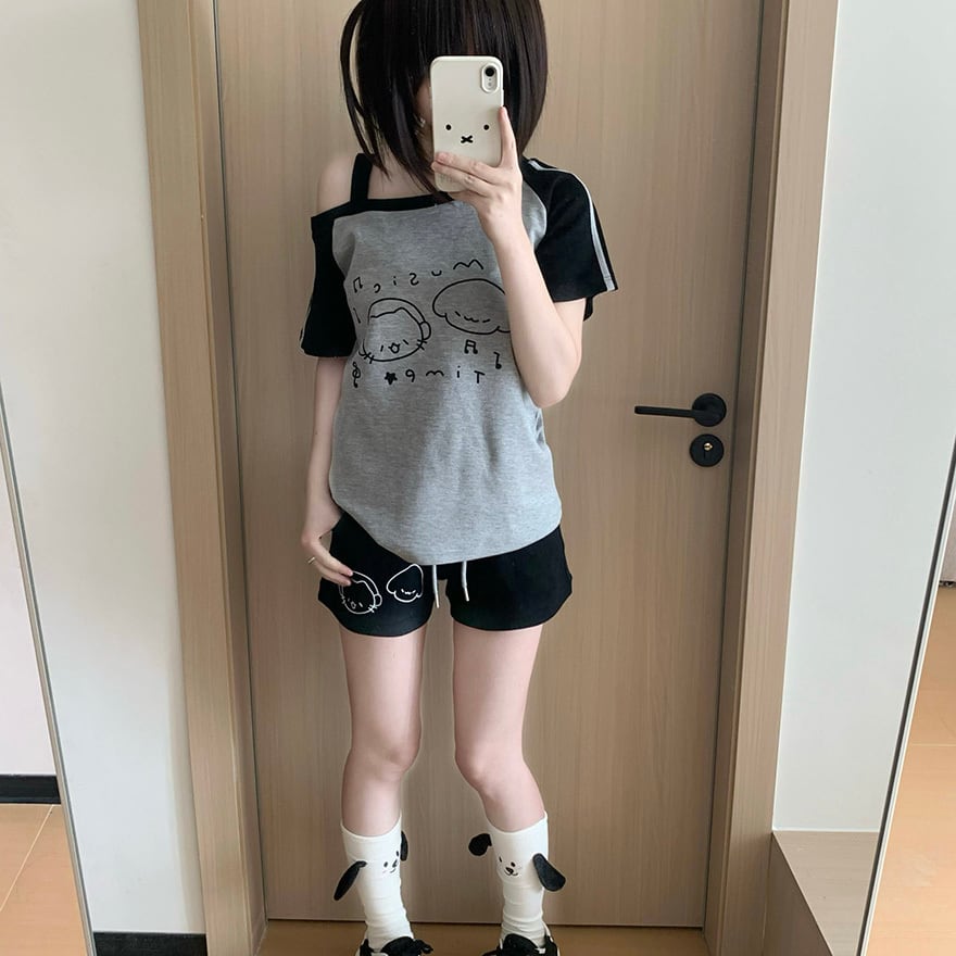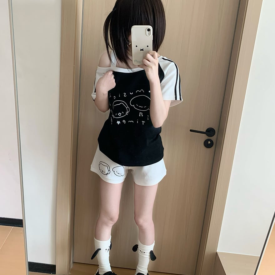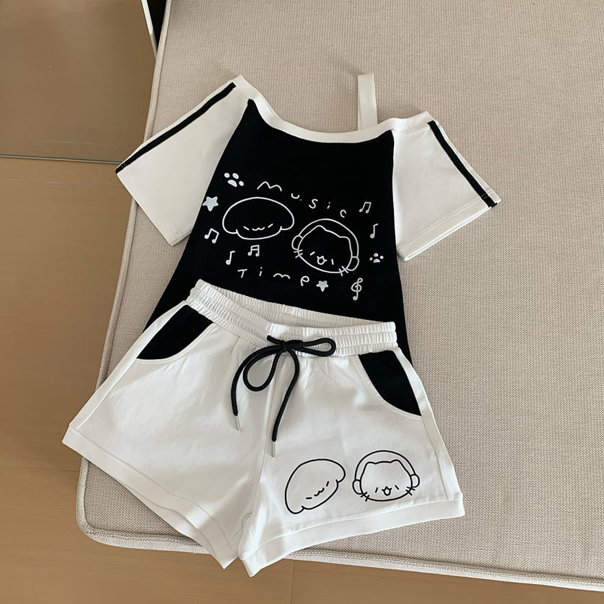 メンヘラ・ぴえん系 セットアップ(Tシャツ+ショートパンツ)