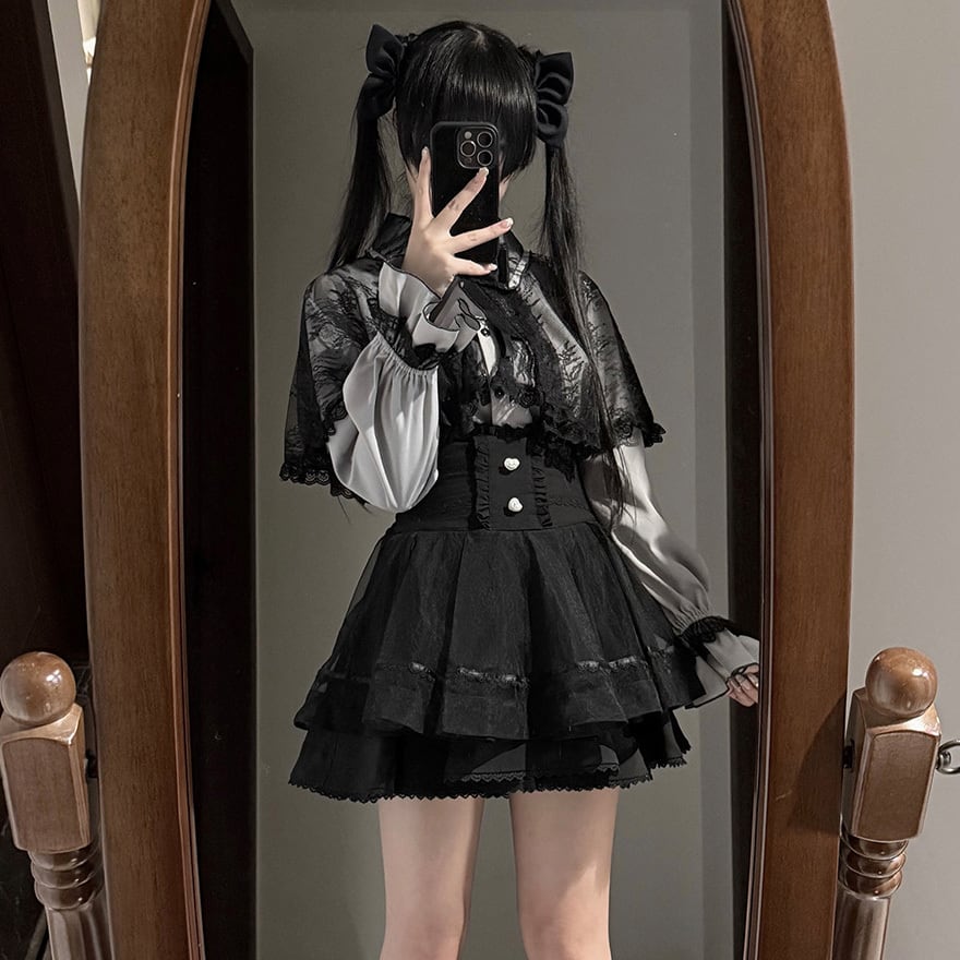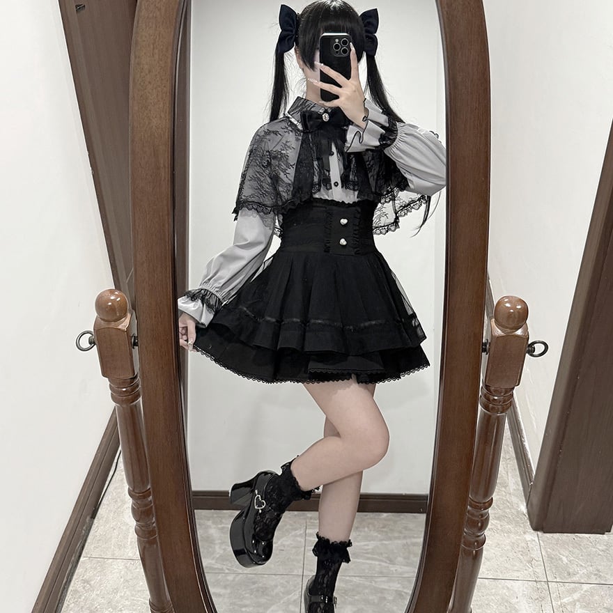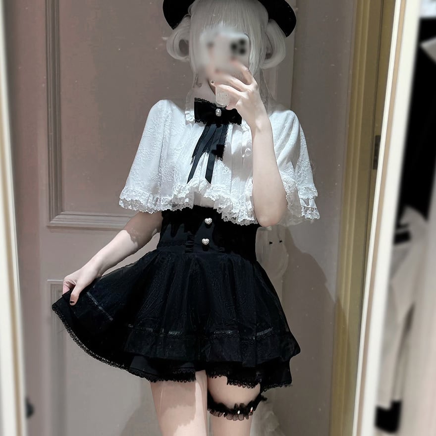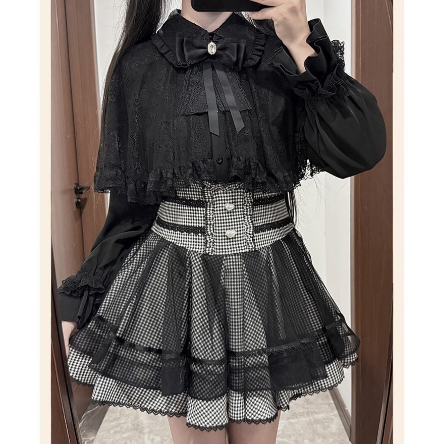 黒千鳥格子と段フリルレースが特徴で、推し活やライブ参戦に最適な地雷系ミニスカです。