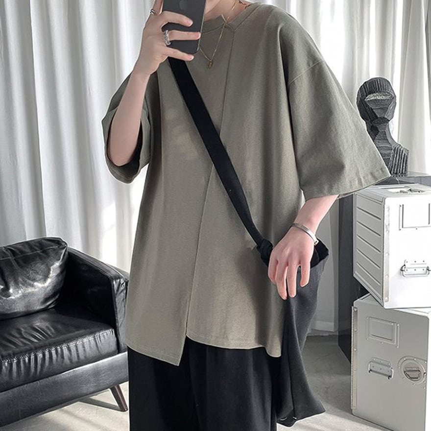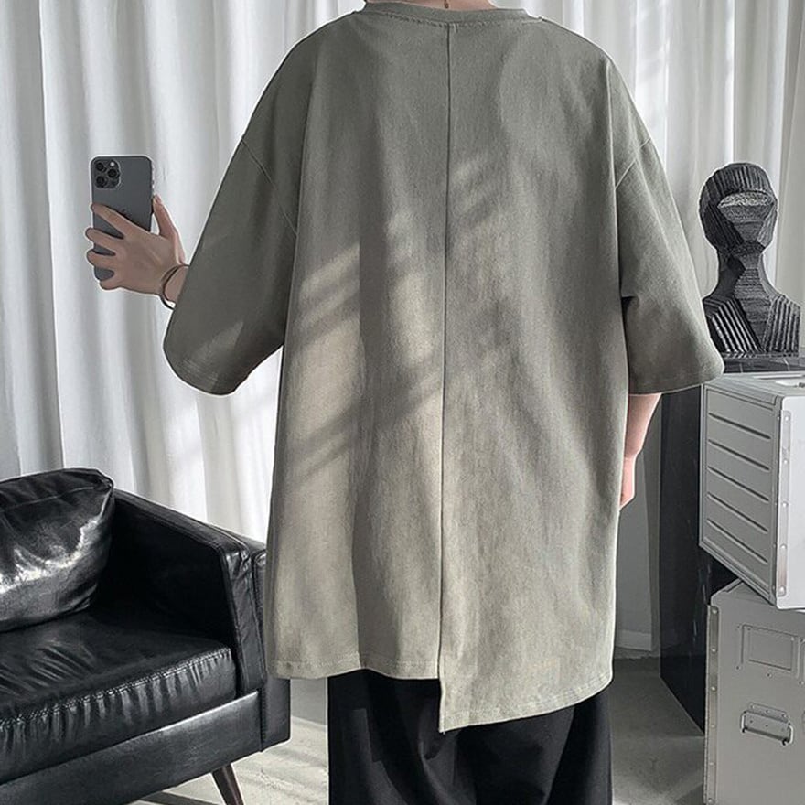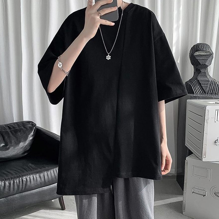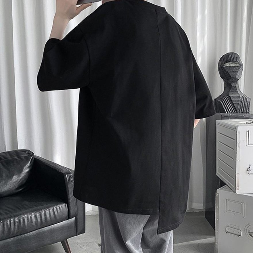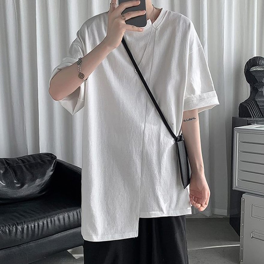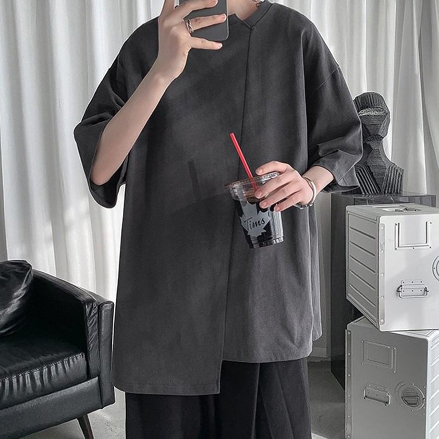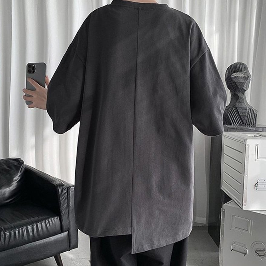 サブカル系メンズのアシンメトリー裾デザイン半袖Tシャツ