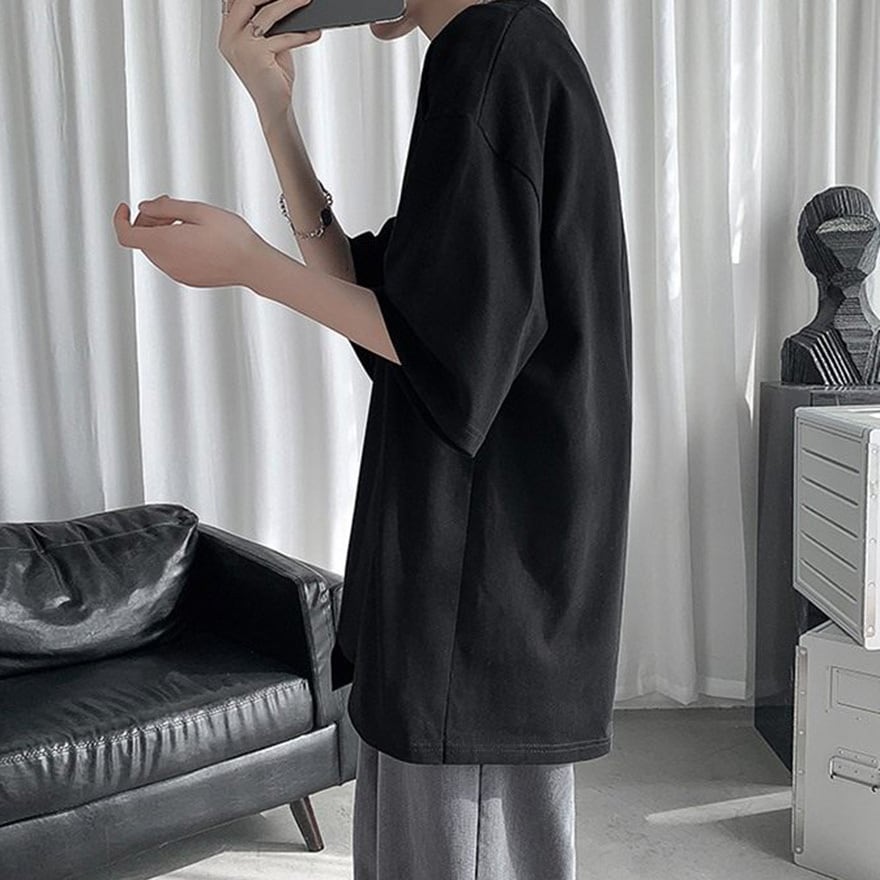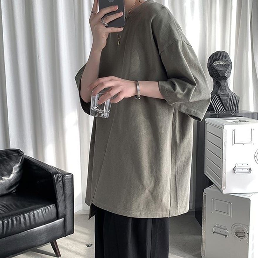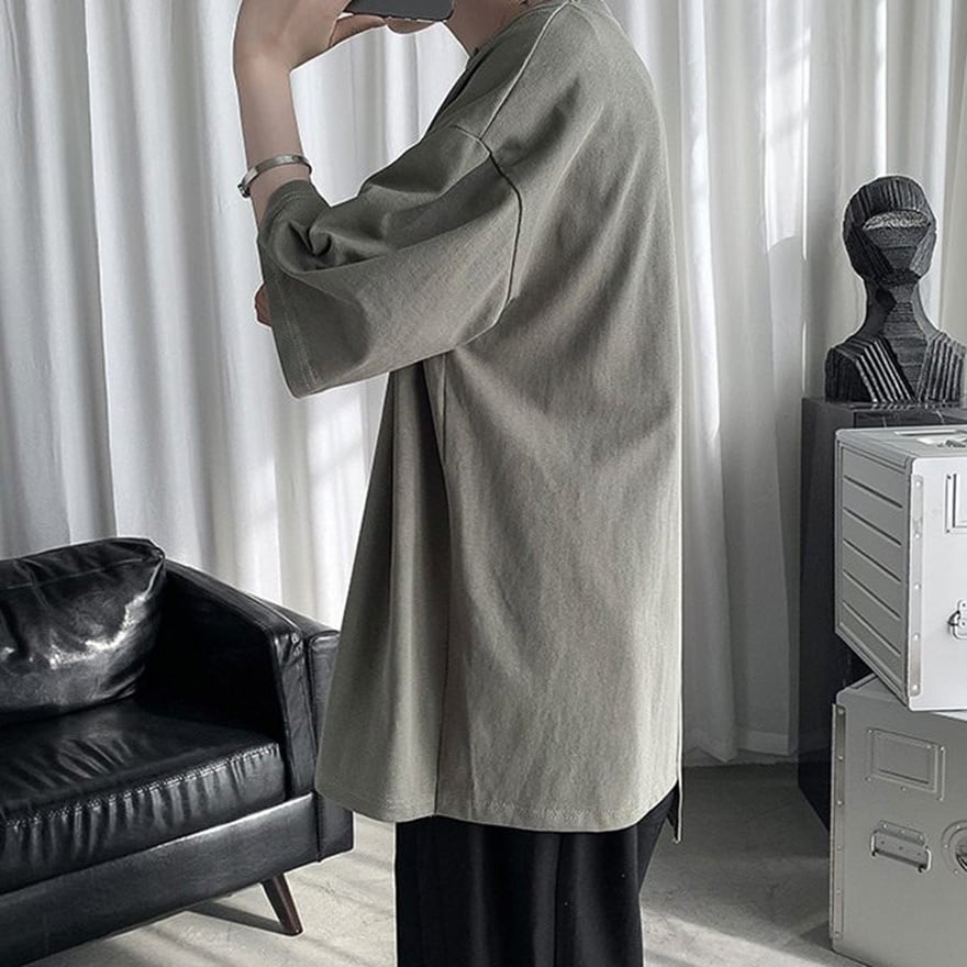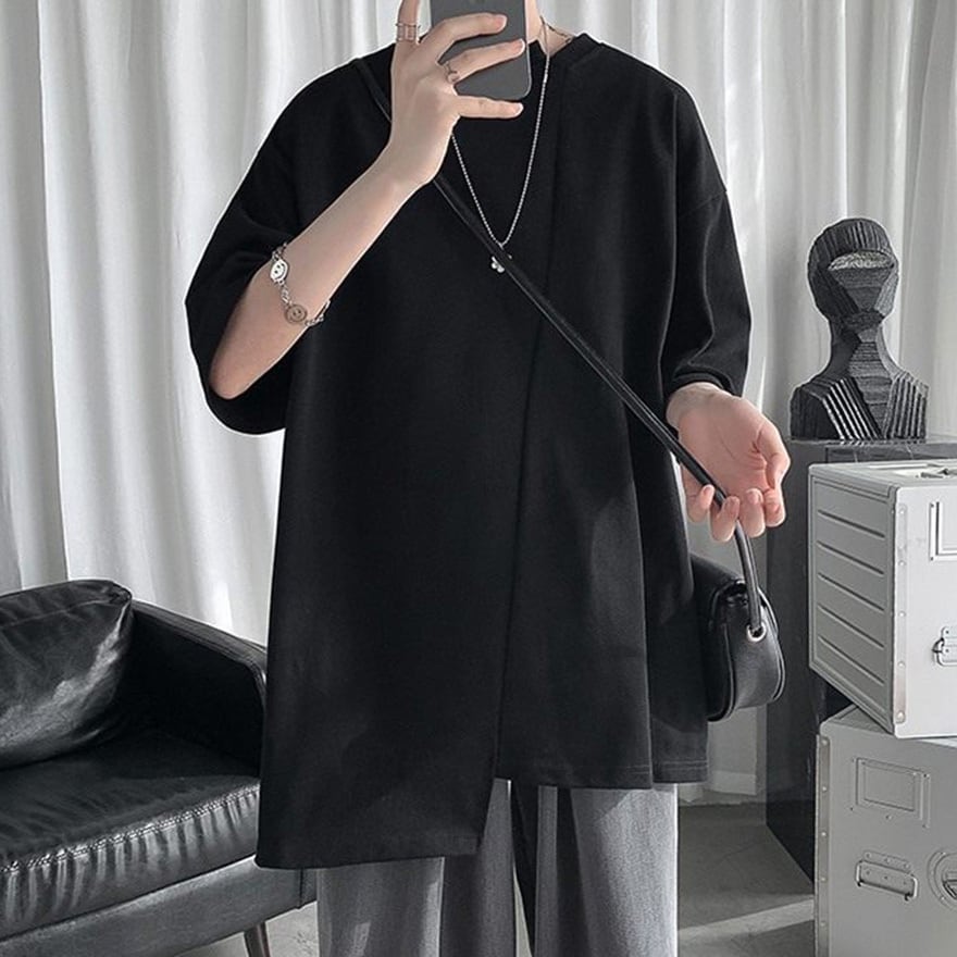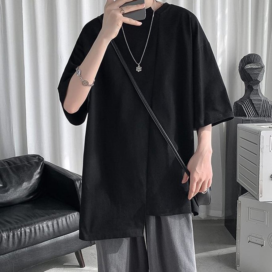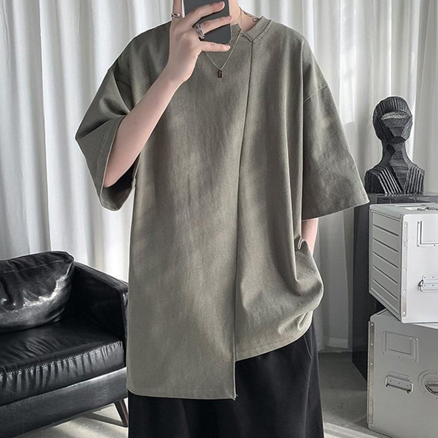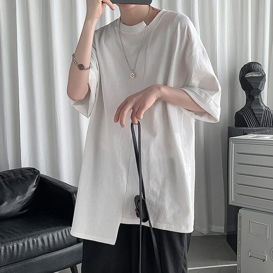 サブカル系メンズのアシンメトリー裾デザイン半袖Tシャツ