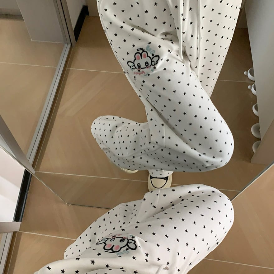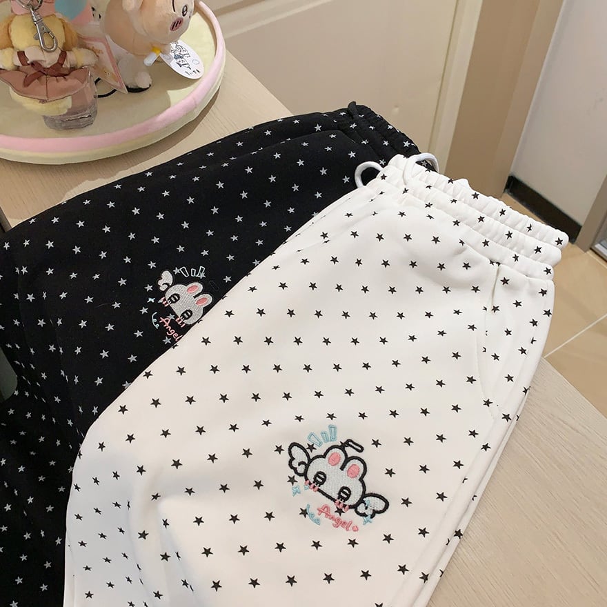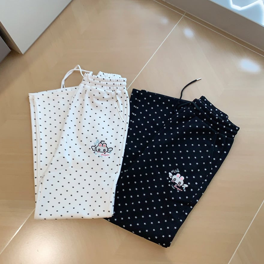 ぴえん系星柄パンツが沼すぎる ゆるだぼ×刺繍で病みかわ映え確定なドッド柄パンツです
