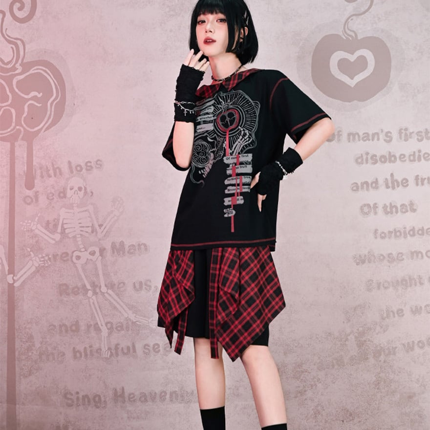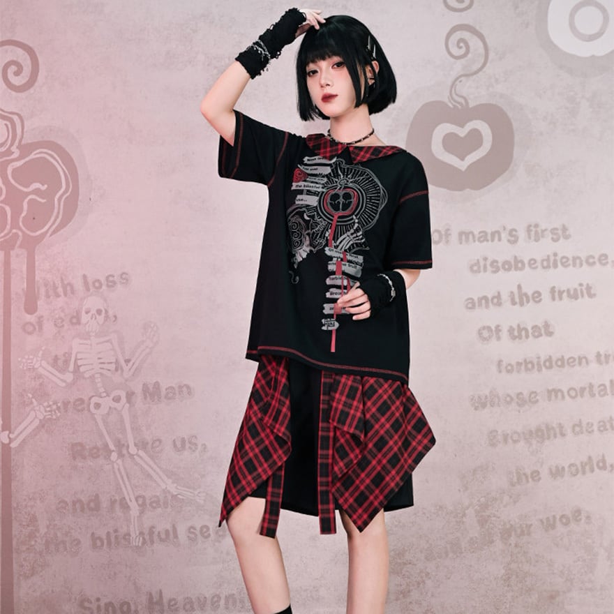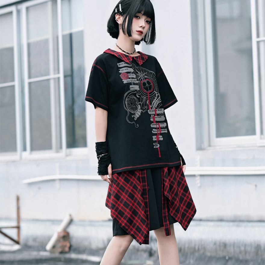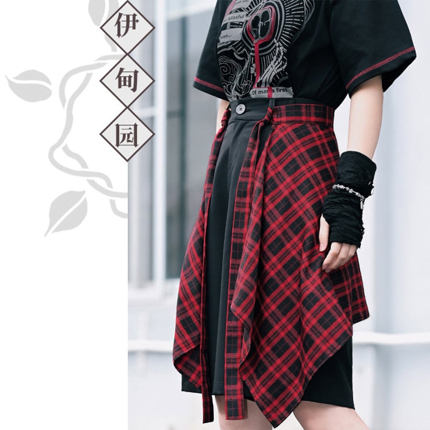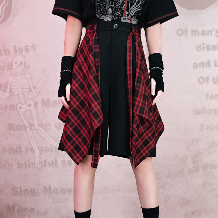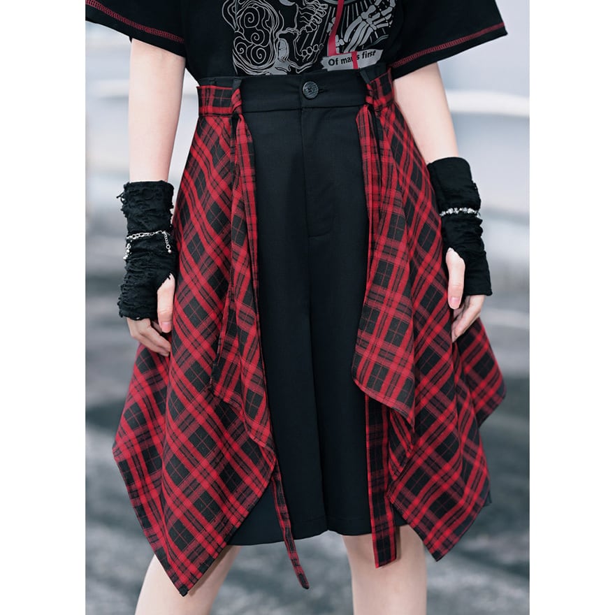 揺れる赤黒チェックが視線を奪うたび、ちょっとダークで刺さる自分になれる。